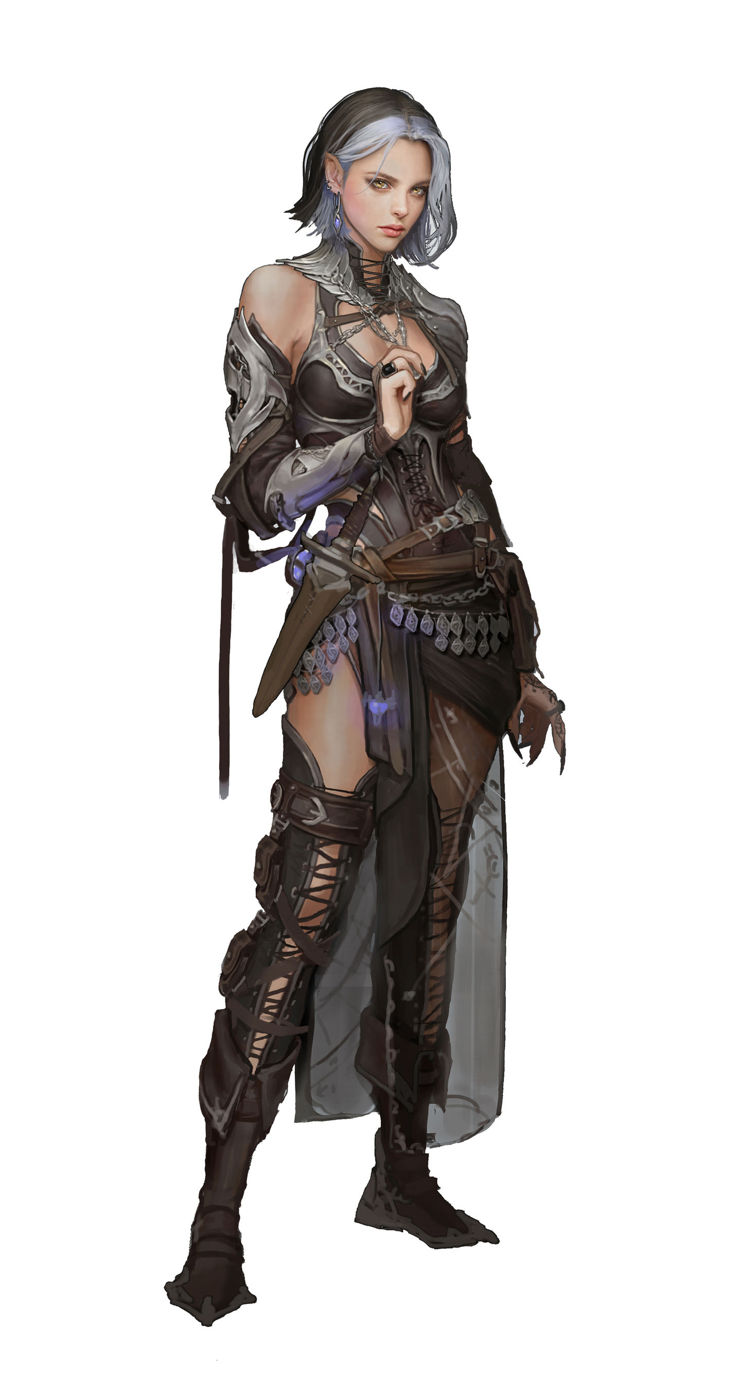 막연한 아이디어를 시각적인 결과물로 만드는 과정을 실습합니다. 캐릭터의 설정과 성격을 복식, 무기, 장신구 등의 디자인을 통해 풀어냅니다.